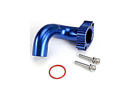 Traxxas Header, blue-anodized aluminum (for rear exhaust engines only) (TRX 2.5, 2.5R, 3.3)